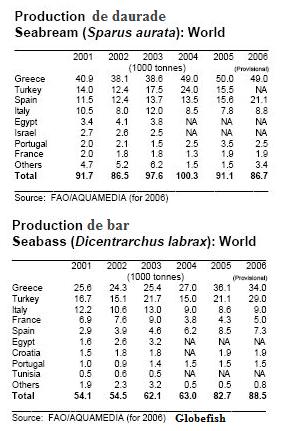 - Etude des performances économiques et de la compétitivité de l’aquaculture de l’Union Européenne (DG Mare – 2008) : Une grande partie de cette étude est consacrée à l'élevage de bar et dorade en Europe....