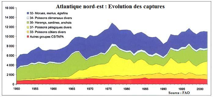 L’Atlantique du nord-est est la principale zone de pêche pour les 27 États membres de l’Union Européenne. Avec 3,6 millions de tonnes en 2008, l’ANE contribue à plus de 70% des captures communautaires. Malgré son importance dans l’approvisionnement en produits halieutiques, cette zone de pêche devient de plus en plus une chasse-gardée des grandes nations de pêche de l’Europe du nord, non membres de l’Union Européenne. Depuis la création de l’Europe bleue en 1983, le poids de la pêche communautaire a considérablement diminué dans cette zone stratégique de la pêche mondialisée. En 2008, l’Europe des 27 ne représente plus que 42% des captures de l’ANE alors qu’elle en représentait 55% en 1988 (compris les nouveaux membres). Sur cette période de 20 ans, les captures communautaires sont passées de 5,7 à 3,6 millions de tonnes pendant que les captures totales des nations du nord, Norvège, Islande, Russie et Féroé ont progressé de 4,6 à 5,0 millions de tonnes.