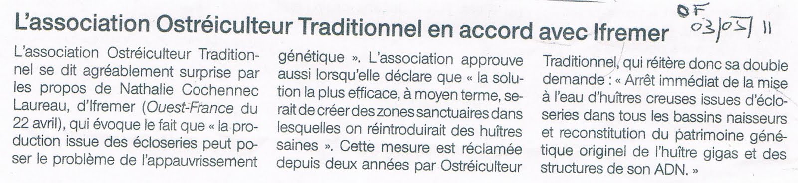 Opération solidarité avec les ostréiculteurs du Japon (Ouest France)